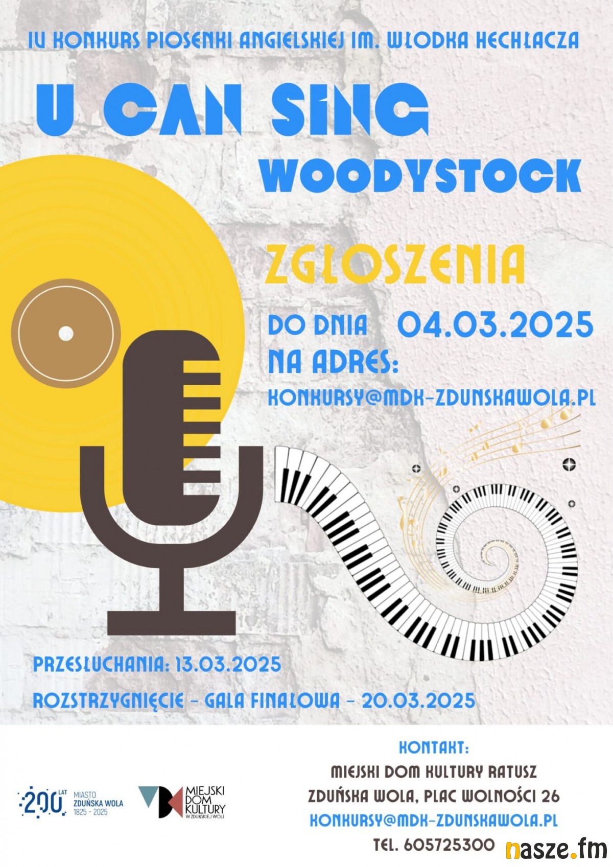 Czwarta edycja Konkursu Piosenki Angielskiej "U Can Sing - Woodystock" odbędzie się w dniach: 13 marca - przesłuchania i 20 marca - gala finałowa.