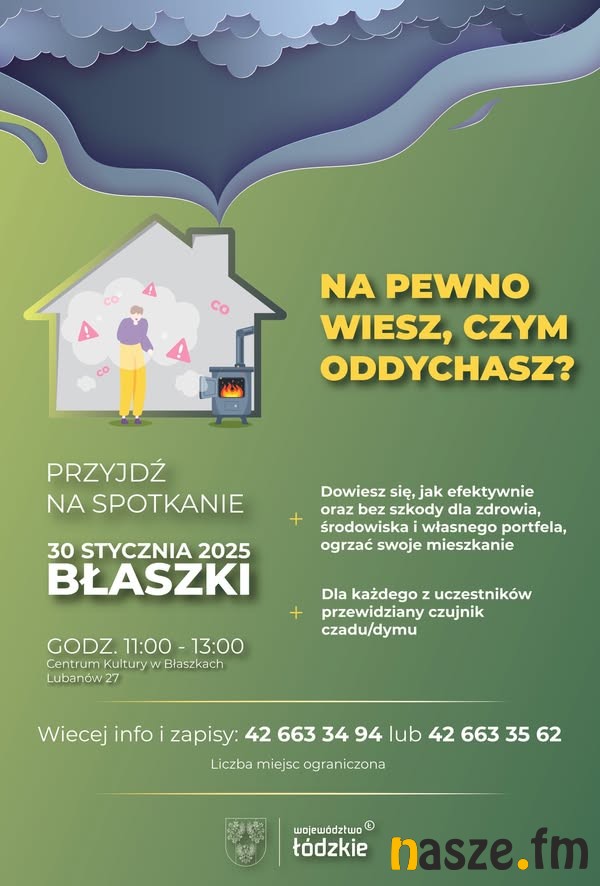 W dn. 30 stycznia o godz. 11:00 w Centrum Kultury w Błaszkach (pow. sieradzki) odbędzie się ważne spotkanie o smogu i efektywnym ogrzewaniu domów organizowane przez Urząd Marszałkowski w Łodzi.