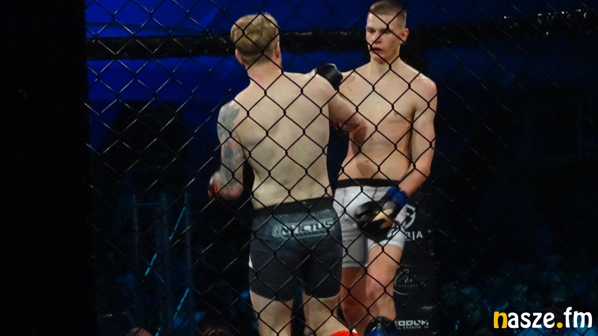 - Iwo Kałuda (PFT MMA Zduńska Wola) wygrał przed czasem z Szymonem Filipiakiem (Wataha Fighrt Club) (do 56,7 kg)