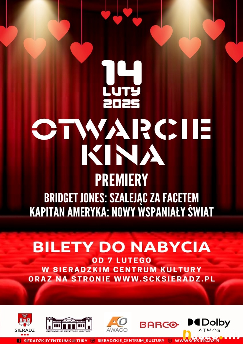 W przyszłym tygodniu w Sieradzkim Centrum Kultury odbędą się pierwsze seanse w nowej sali kinowej. Oficjalne otwarcie zaplanowano na piątek 14 lutego. Jako pierwsze w nowym kinie mają być wyświetlone dwa filmy: "Bridget Jones: Szalejąc za facetem" oraz "Kapitan Ameryka: Nowy wspaniały świat".