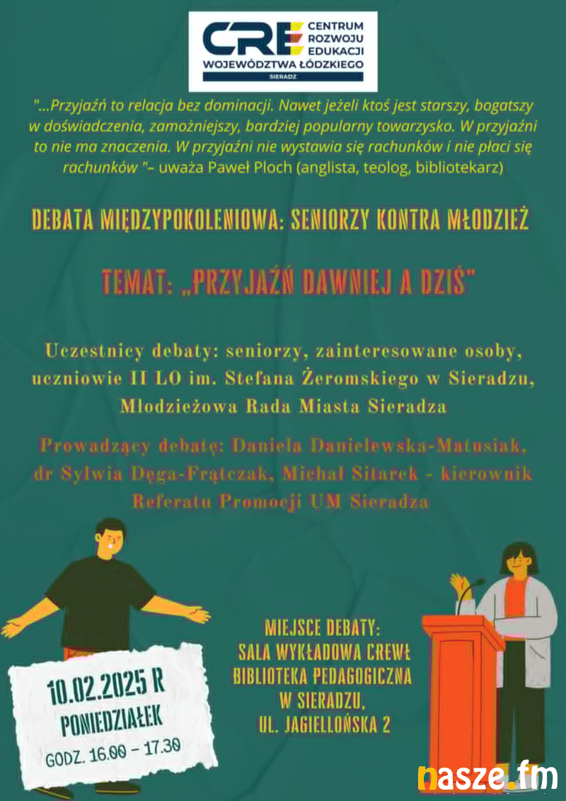 W Sieradzu może wywiązać się ciekawa międzypokoleniowa dyskusja. W najbliższy poniedziałek będzie niecodzienna debata. Wstęp dla zainteresowanych wolny.