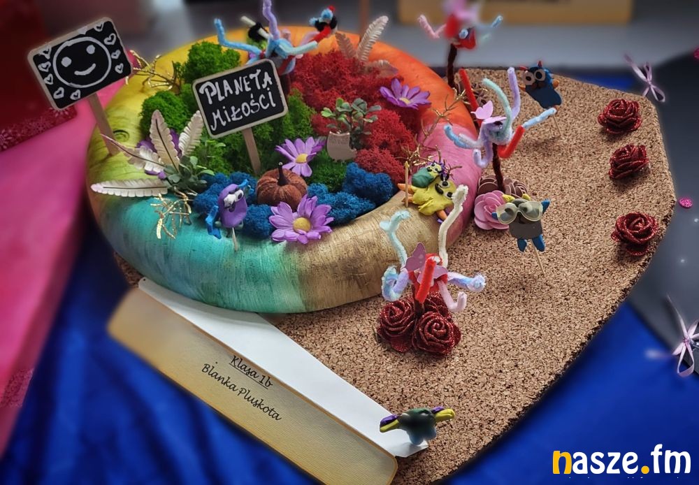 Okazało się, że obie okazje można połączyć w bardzo interesujący sposób. Wszystko zaczęło się od konkursu plastycznego na zaprojektowanie i wykonanie modelu nowej planety- planety przyjaźni i miłości. Prace uczniów przeszły najśmielsze oczekiwania nauczycieli, którzy mieli nie lada wyzwanie podczas typowania laureatów.