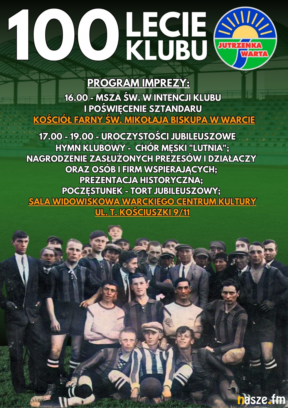 Uroczystości rozpoczną się od mszy świętej w intencji klubu i poświęcenia sztandaru. To odbędzie się w Kościele Farny św. Mikołaja Biskupa w Warcie. Następnie uczestnicy obchodów udadzą się do Warckiego Centrum Kultury. Tam zostanie odegrany hymn klubowy, a nagrody odbiorą zasłużeni działacze Jutrzenki. Będzie też prezentacja historyczna oraz jubileuszowy tort.
