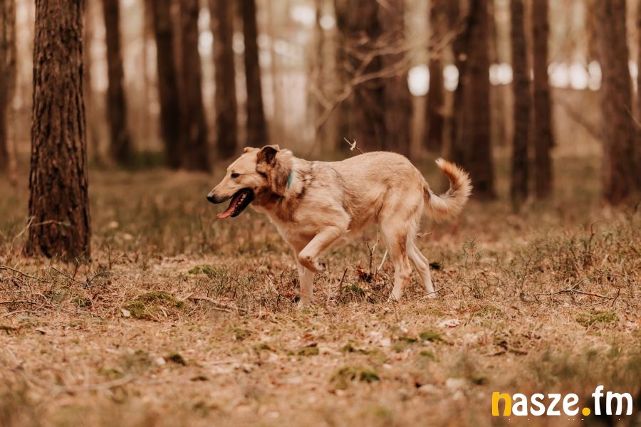 Obroża – to była długa, pełna małych kroczków historia. Najpierw był strach i ucieczka, potem zaciekawione wąchanie, aż w końcu – założona obroża! Sukces! Pierwsze spacery były ostrożne, ale już wtedy widać było coś pięknego – w chwilach stresu Barney szukał kontaktu z człowiekiem. Każdego dnia szedł coraz śmielej, zaczął eksplorować las, poznawać zapachy, uczyć się świata. Samochody? Ignorowane. Smycz? Już nie potwór.