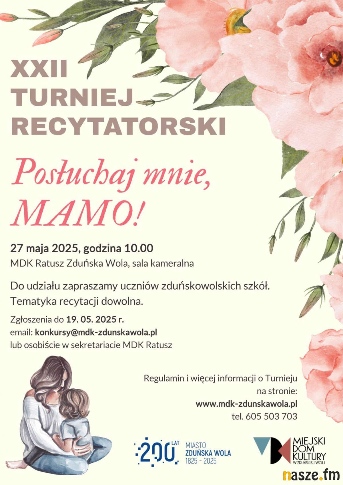 Zapraszamy uczniów zduńskowolskich szkół do udziału w dwudziestej drugiej edycji Turnieju Recytatorskiego "Posłuchaj mnie, mamo".