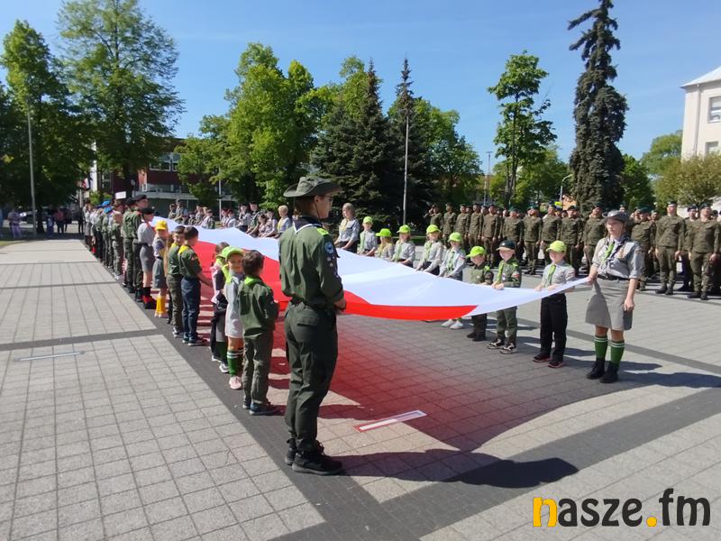 Flagi państwowe na maszt, odśpiewany wspólnie hymn narodowy, biało - czerwone chorągiewki rozdawane mieszkańcom. W regionie upamiętniliśmy dziś Święto Flagi RP.
