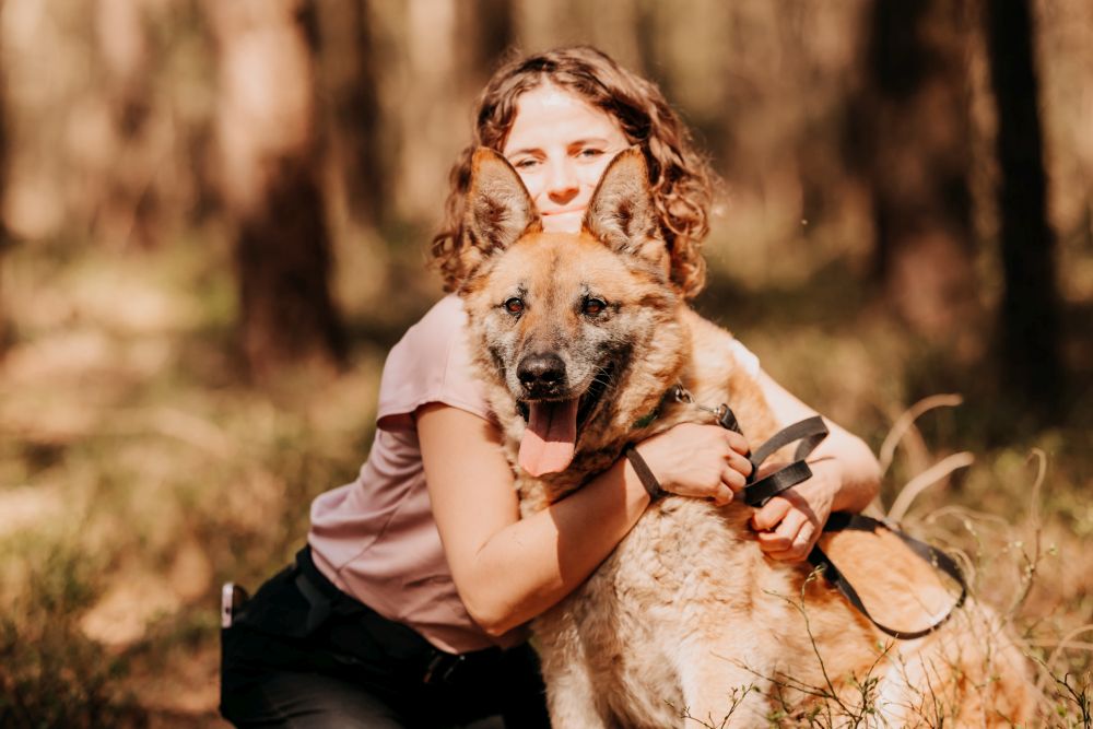 Na spacerze jest bardzo kontaktowy i uwielbia współpracować z człowiekiem. Pięknie reaguje na komendę „siad” – nie tylko wykonuje ją bez wahania, ale też potrafi utrzymać pozycję dłużej, co bardzo ułatwia pracę z nim. Uwielbia mizianie po brzuchu – przy człowieku rozkwita i pokazuje swoją miękką, serdeczną stronę. Na smyczy jest aktywny, ale nie ciągnie przesadnie – to młody pies pełen energii, który po prostu potrzebuje regularnych spacerów i zabawy.