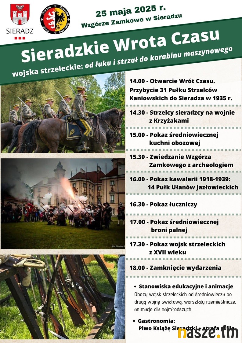 Łucznicy, kusznicy, strzelcy czarnoprochowi, a nawet... ułani i strzelcy kaniowscy - wojska II Rzeczypospolitej, oraz powstańcy styczniowi. Sieradzkie wzgórze zamkowe stanie się dziś przestrzenią prezentacji jednostek wojskowych, posługujących się bronią strzelecką na przestrzeni dziejów.