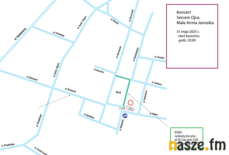 Już 31 maja o godz. 20.00 na sieradzkim Rynku wystąpi Mała Armia Janosika. W związku z koncertem zmieni się organizacja ruchu w tej części Sieradza.