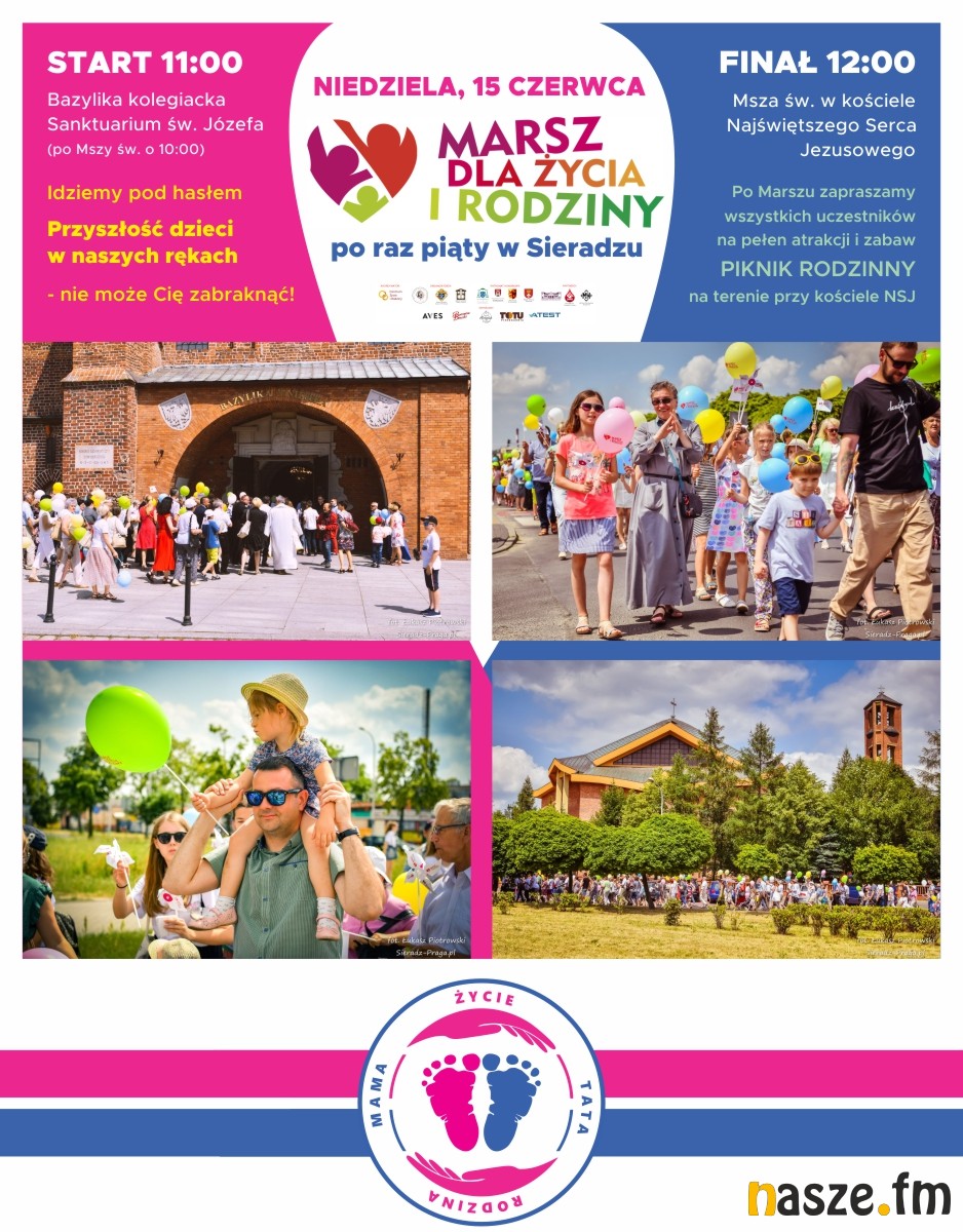 Już po raz piąty w najbliższą niedzielę ulicami Sieradza przejdzie Marsz dla Życia i Rodziny. W tym roku hasłem Marszu jest „Przyszłość dzieci w naszych rękach”. Marsz rozpocznie się o godz. 11:00 przed Bazyliką kolegiacką, a zakończy się piknikiem rodzinnym na terenie przy kościele Najświętszego Serca Jezusowego w Sieradzu. Marsz dla Życia i Rodziny przejdzie też ulicami Zduńskiej Woli. Szczegóły poniżej.