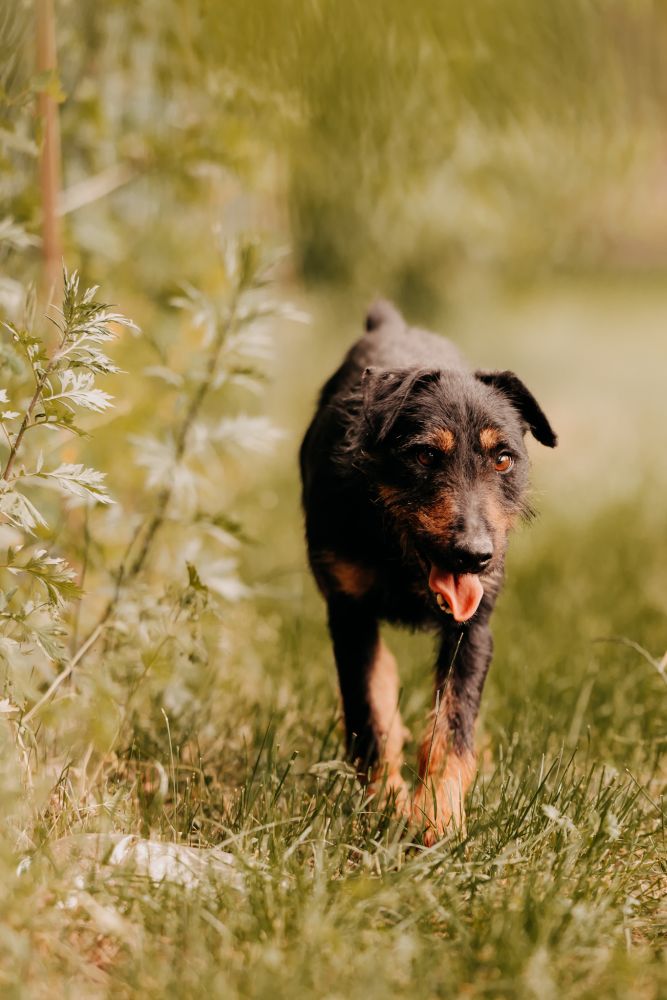 Charlie to pies, który dopiero uczy się, że człowiek może być fajny. Nie jest lękowy, ale po prostu niezależny. Na placu zabaw był bardziej zainteresowany zapachami niż nami, ale pod koniec treningu... pojawiła się iskierka – głównie ze względu na smaczki. Ma wyraźne zapędy łowieckie – klasyczny terier. Obecnie jest w trakcie nauki chodzenia na smyczy, więc przyszły opiekun będzie musiał wykazać się cierpliwością i konsekwencją. To nie miś do tulenia, tylko samotnik, który czasem zerknie w Twoją stronę i jak uzna, że jesteś tego wart – zostanie na dłużej.