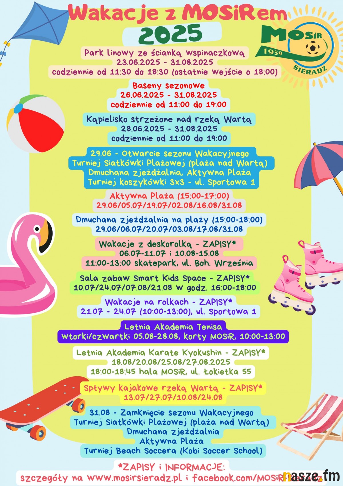 Tradycyjnie na czas wakacji Miejski Ośrodek Sportu i Rekreacji w Sieradzu przygotował bogaty pakiet zajęć i imprez sportowych. Szczegóły w rozpisce poniżej.