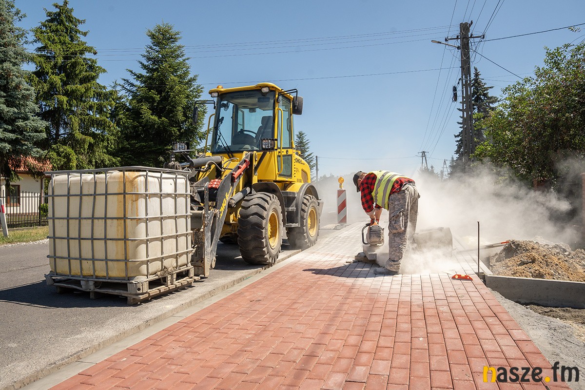 Zakończono już modernizację przepustu pod drogą, a prace przy układaniu nawierzchni chodnika zmierzają ku końcowi, zwłaszcza na odcinku przylegającym do terenu leśnego. Zgodnie z harmonogramem, całość inwestycji ma zostać ukończona do końca wakacji.