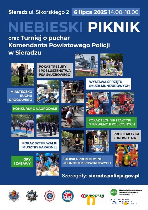 Komenda Powiatowa Policji w Sieradzu wraz z partnerami zaprasza na Niebieski Piknik. Wydarzenie będzie w najbliższą niedzielę w godz. 14 - 18 przed siedzibą komendy przy ul. Sikorskiego. Wstęp wolny.