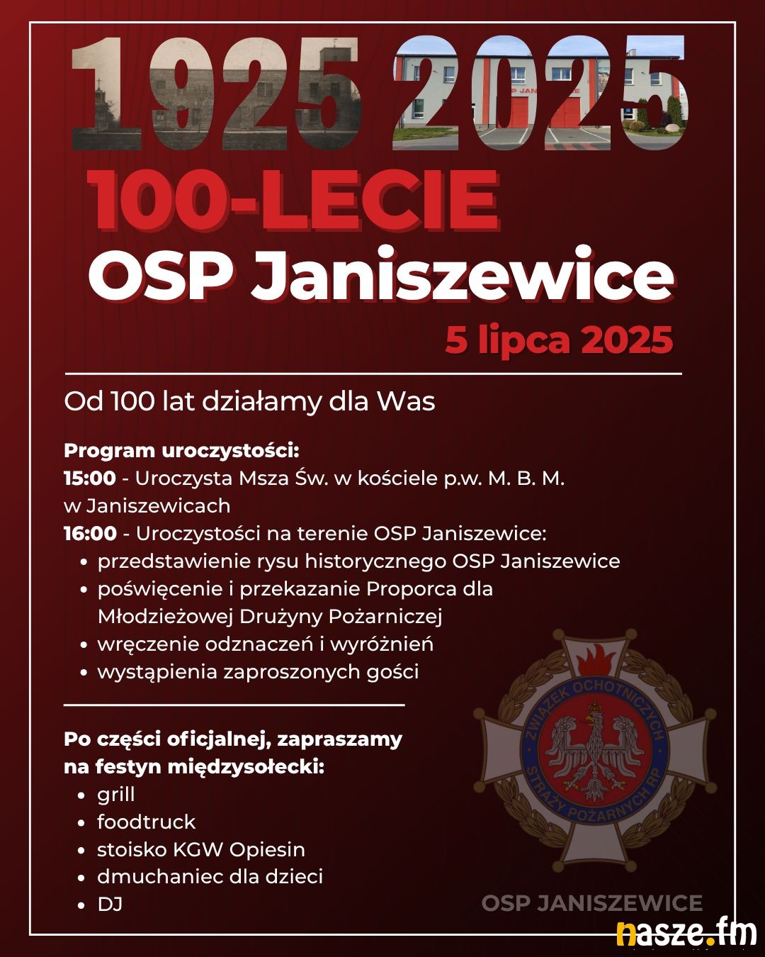 Finał jubileuszu zaplanowano na 19 października 2025 r. Tego dnia odbędą się: premiera reportażu i książki o historii OSP Janiszewice, będącej podsumowaniem 100 lat działalności jednostki,