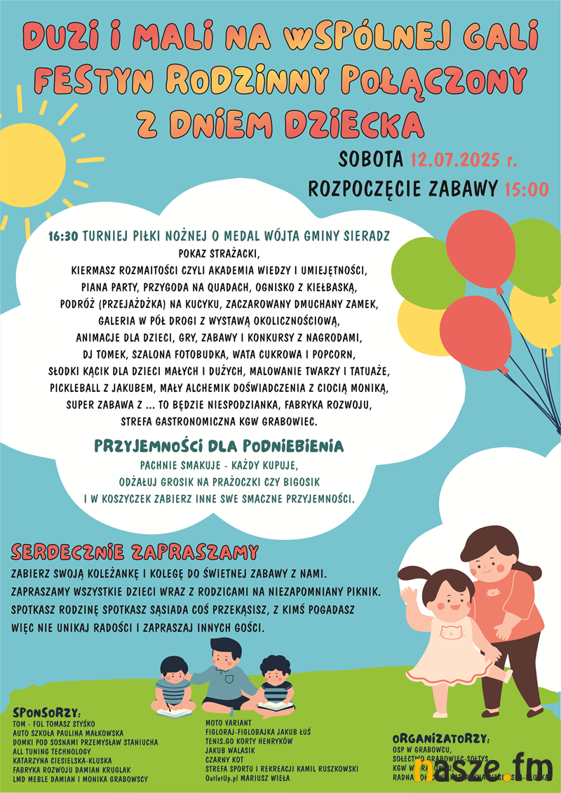 Ochotnicza Straż Pożarna w Grabowcu pod Sieradzem wraz z partnerami zaprasza w najbliższą sobotę na Festyn Rodzinny połączony z Dniem Dziecka.