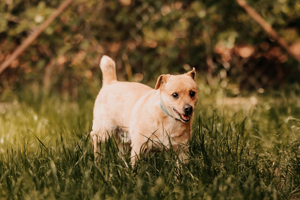 Co warto o nim wiedzieć? Nasz biszkoptowy bohater waży około 11 kg – nie za duży, nie za mały, po prostu w sam raz do tulenia. Na razie nie zna komend, ale to nie znaczy, że nie potrafi się uczyć – wręcz przeciwnie! Gdy tylko pojawiają się smaczki, jego skupienie rośnie jak ciasto w piekarniku. Nauka chodzenia na smyczy już trwa i idzie mu całkiem nieźle. W kojcu cieszy się na widok ludzi jakby wygrywał los na loterii – poza nim bywa bardziej niepewny, ale nie ma w nim cienia agresji. Pozwolił się wyczesać, mimo stresu, i sam decydował, kiedy potrzebuje chwili spokoju. To pies, który mówi „daj mi czas&rdquo, a potem odwdzięcza się całym sobą.