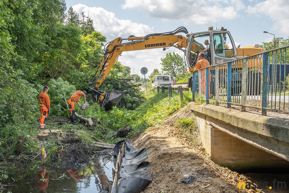 Aktualnie trwają roboty przy budowie drogi dojazdowej do tymczasowego obiektu, który ma zostać wybudowany i udostępniony dla ruchu zanim rozpoczną się roboty rozbiórkowe na starym moście. Drogowcy usuwają także w ciągu drogi kolizje teletechniczne.