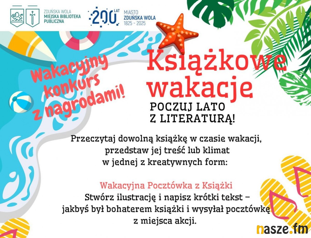 Do wakacji z książką zachęca Miejska Biblioteka Publiczna w Zduńskiej Woli. Zaprasza dzieci, młodzież i dorosłych do udziału w wakacyjnym konkursie "Książkowe wakacje - Poczuj lato z literaturą".