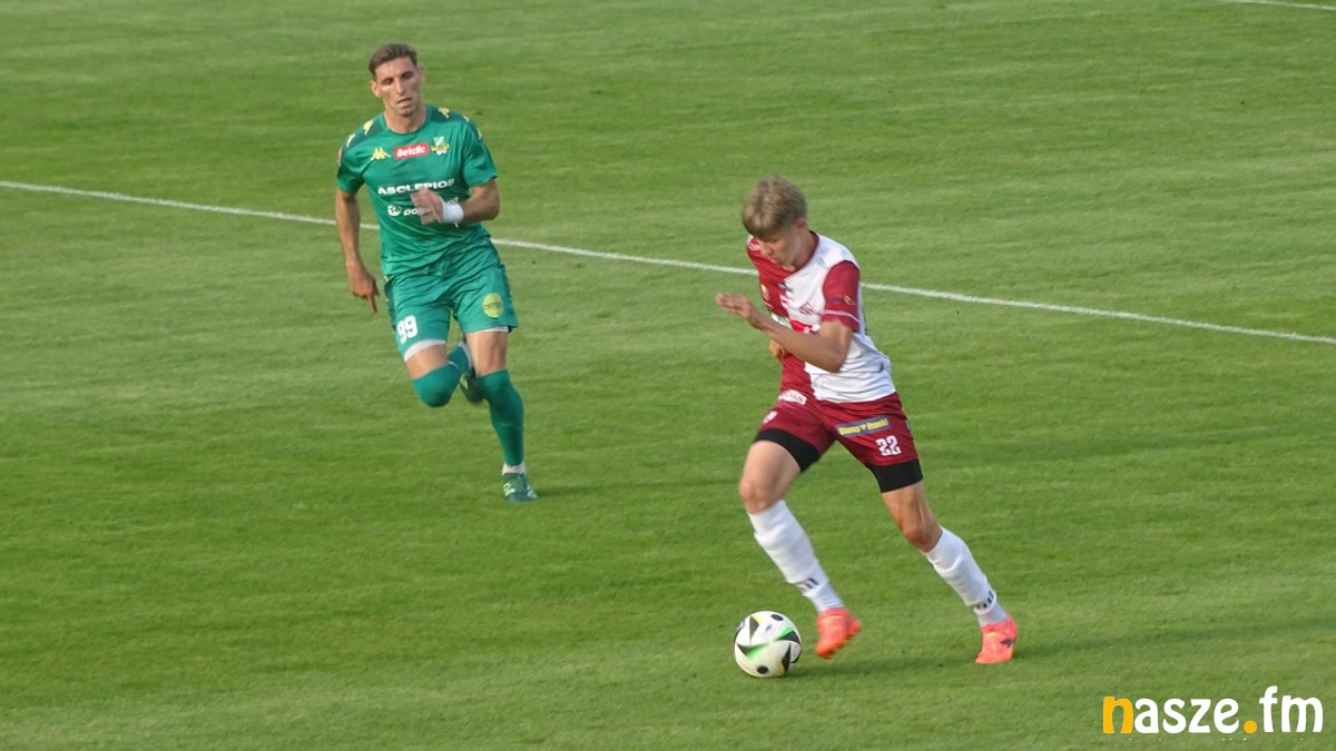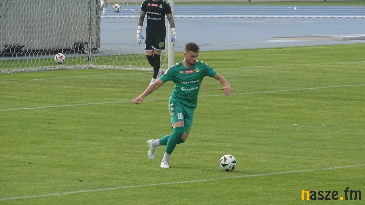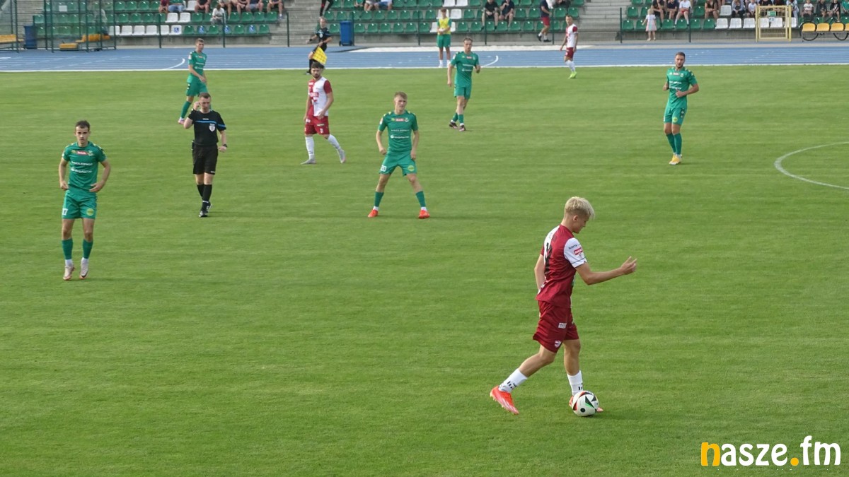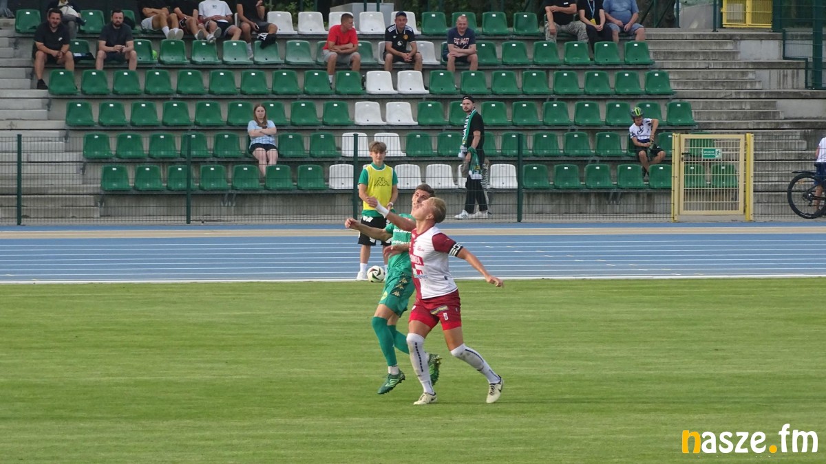 W wyjściowym składzie pojawiło się trzech nowych zawodników – Jakub Murat, Duilio i Kacper Drzazga. Pierwsza połowa nie przyniosła goli, ale więcej konkretów w grze ofensywnej mieli goście. Dwukrotnie byli blisko, by zdobyć bramkę po uderzeniu głową, ale w obu przypadkach piłka nieznacznie minęła słupek Mykyty Zelensky’iego.
