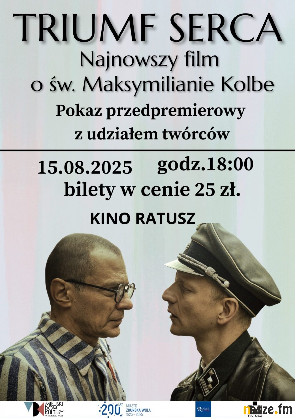 Triumf Serca – najnowszy film o świętym Maksymilianie Kolbe będzie miał swoją przedpremierę w Kinie Ratusz w Zduńskiej Woli. Będzie to jeden z dwóch pokazów w Polsce.