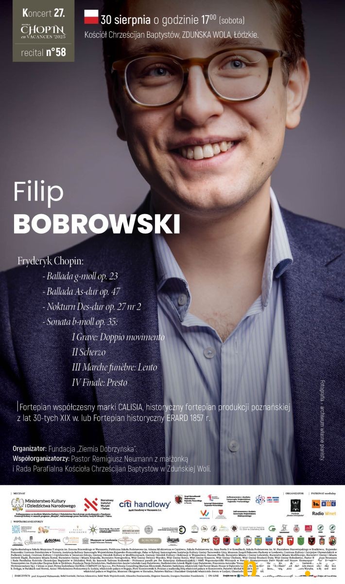 - Chciałbym Państwa serdecznie zaprosić na niezwykły koncert z cyklu Chopin en Vacances. Będzie to drugi już tego rodzaju koncert w naszym mieście. Wystąpią dla nas Aleksandra i Filip Bobrowscy, którzy wykonają najlepsze utwory Chopina - zaprasza na koncert Remigiusz Neumann, pastor Kościoła Chrześcijan Baptystów w Zduńskiej Woli.