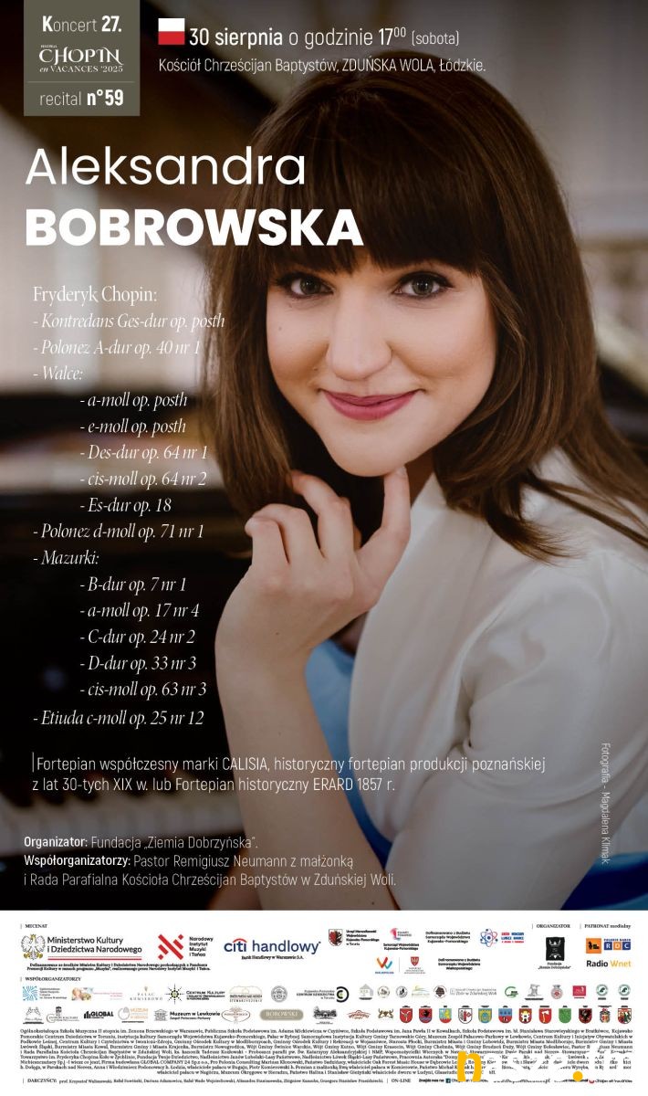 W najbliższą sobotę, 30 sierpnia, w Kościele Chrześcijan Baptystów w Zduńskiej Woli rozbrzmi muzyka Fryderyka Chopina. Odbędzie się tam koncert w ramach Festiwalu Chopin en Vacances 25.