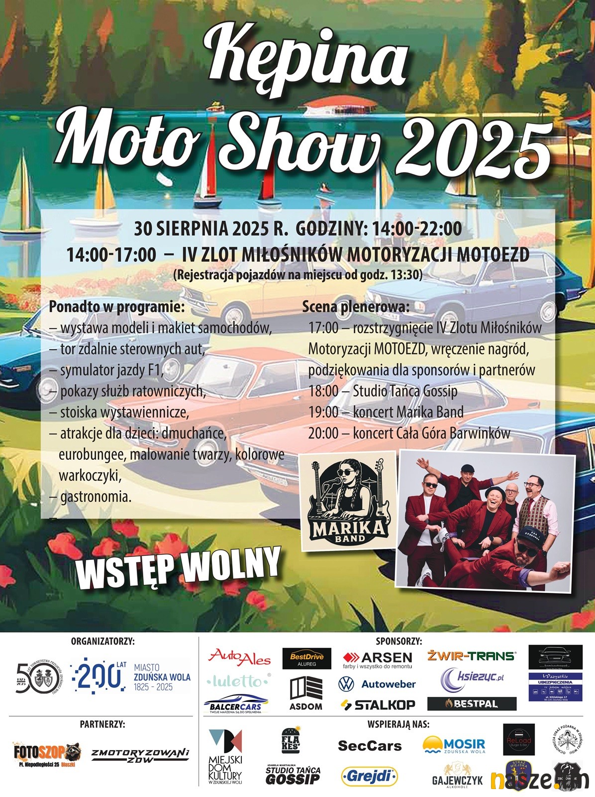 Sekcja Miłośników Motoryzacji Towarzystwa Przyjaciół Zduńskiej Woli wspólnie z Miastem Zduńska Wola, partnerami i sponsorami - w ramach obchodów 200-lecia miasta Zduńska Wola - zapraszają na wyjątkowe wydarzenie plenerowe. Wydarzenie Kępina Moto Show 2025 to przede wszystkim okazja do spotkania się na IV Zlocie Miłośników Motoryzacji MOTOEZD, na który organizatorzy zapraszają wszystkich fanów "czterech kółek". Podczas zlotu wybierane będą najciekawsze i najładniejsze maszyny, a ich właściciele otrzymają atrakcyjne nagrody ufundowane przez sponsorów wydarzenia z branży motoryzacyjnej. Udział w zlocie jest bezpłatny.