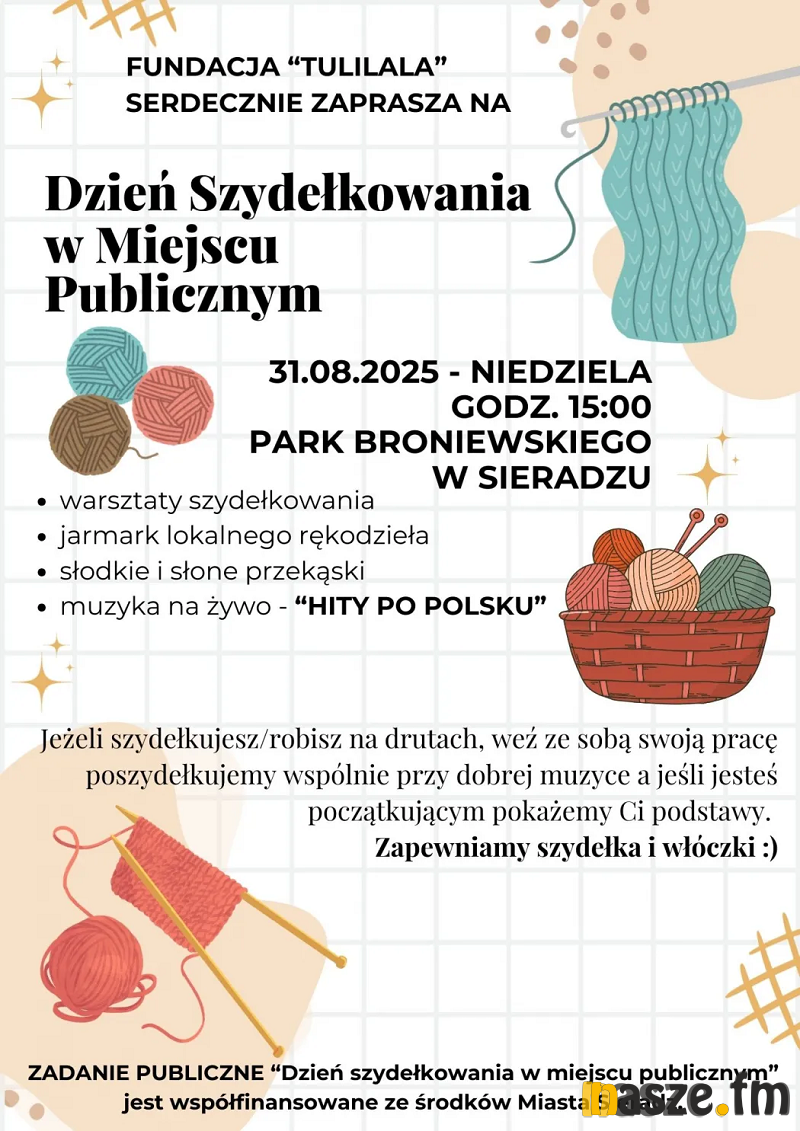 Fundacja "Tulilala" zaprasza mieszkańców Sieradza na Dzień Szydełkowania w Miejscu Publicznym, który odbędzie się w niedzielę, 31 sierpnia w Parku im. Broniewskiego. To nie koniec atrakcji, bo szydełkowaniu będzie towarzyszyć wydarzenie "Hity po polsku".