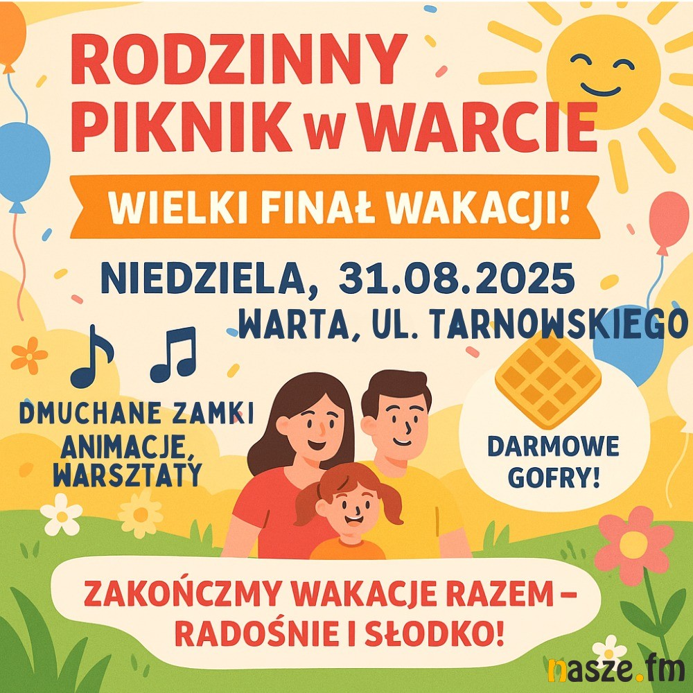 Jutro, 31 sierpnia, na kompleksie sportowo-rekreacyjnym w Warcie odbędzie się ostatni Piknik Rodzinny. Będzie to finał tegorocznych wakacji. W programie przewidziano sporo atrakcji dla całych rodzin.