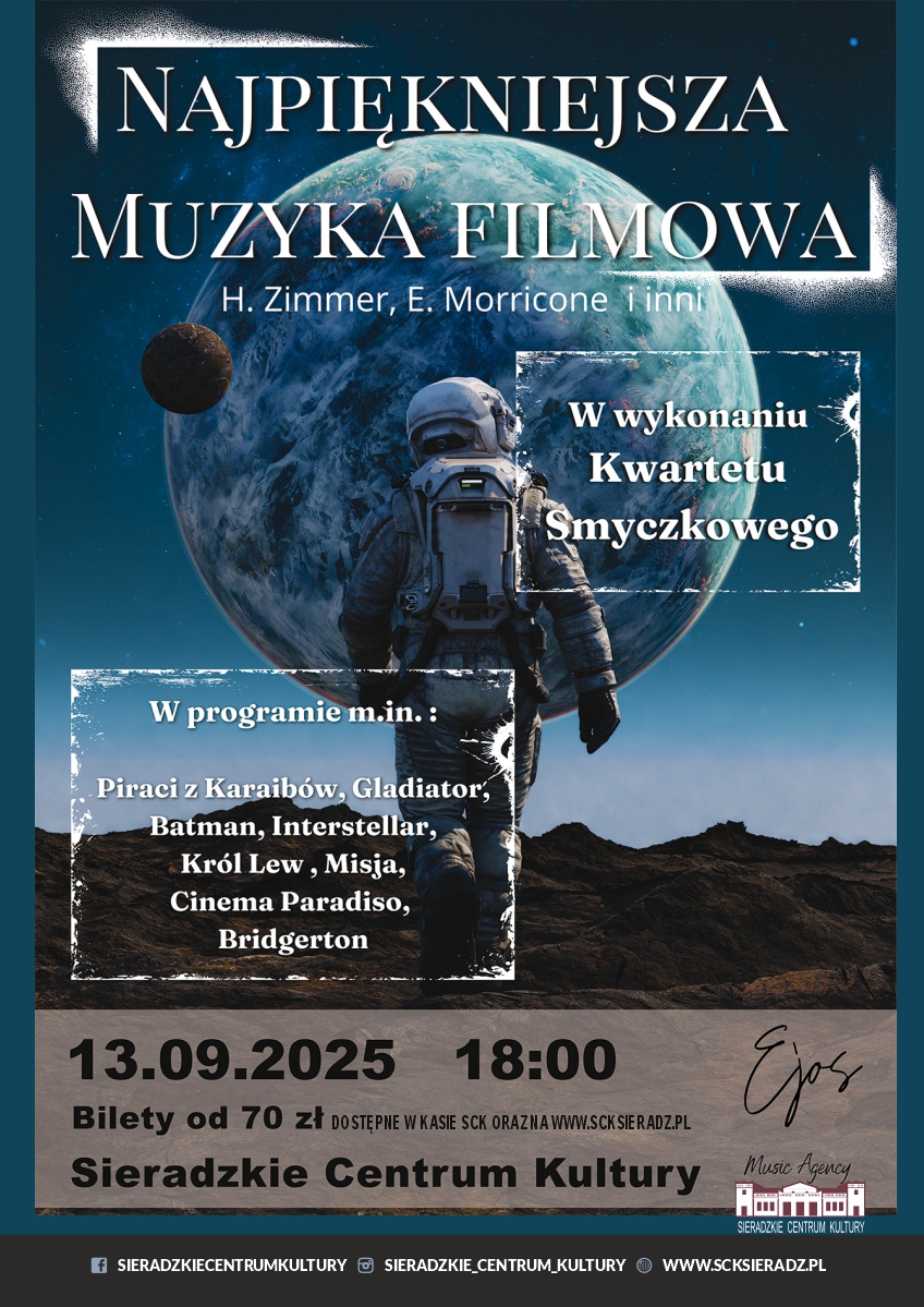 Sieradzkie Centrum Kultury zaprasza jutro na spektakl "Rubinowe gody", z kolei w sobotę na scenie Teatru Miejskiego wystąpi kwartet smyczkowy Ejos, który zaprezentuje muzykę filmową.