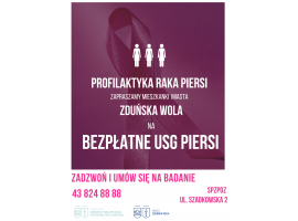 Mieszkanki Zduńskiej Woli mogą zapisywać się na bezpłatne badania USG piersi, jakie prowadzi miejska przychodnia przy ul. Szadkowskiej. Program profilaktyki raka piersi jest finansowany z miejskiego budżetu.