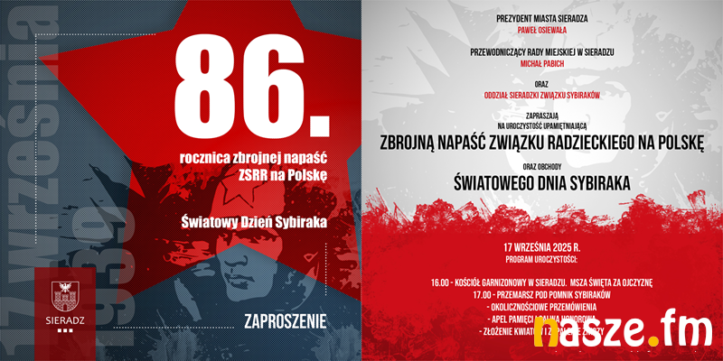 W regionie upamiętniona zostanie rocznica agresji ZSRR na Polskę. Uroczystości będą w Sieradzu i w Zduńskiej Woli.