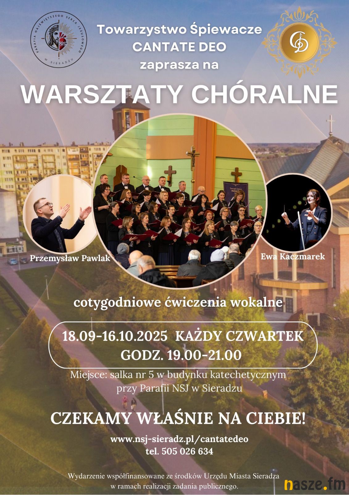 Spotkania warsztatowe odbywają się w siedzibie Towarzystwa Śpiewaczego "Cantate Deo": Sieradz; ul. Aleja Grunwaldzka 8/5 (Dom Parafialny), w godzinach od 19 00 do 21 00.