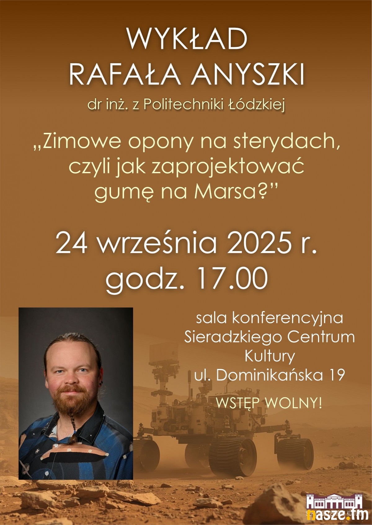 To temat wykładu dr inż. Rafała Anyszki zaplanowanego na środę 24 września w Sieradzkim Centrum Kultury. Adiunkt na Wydziale Chemicznym Politechniki Łódzkiej opowie o swoich badaniach, które mają zaowocować tym, że pojazdy w kosmosie będą miały na czym jeździć.