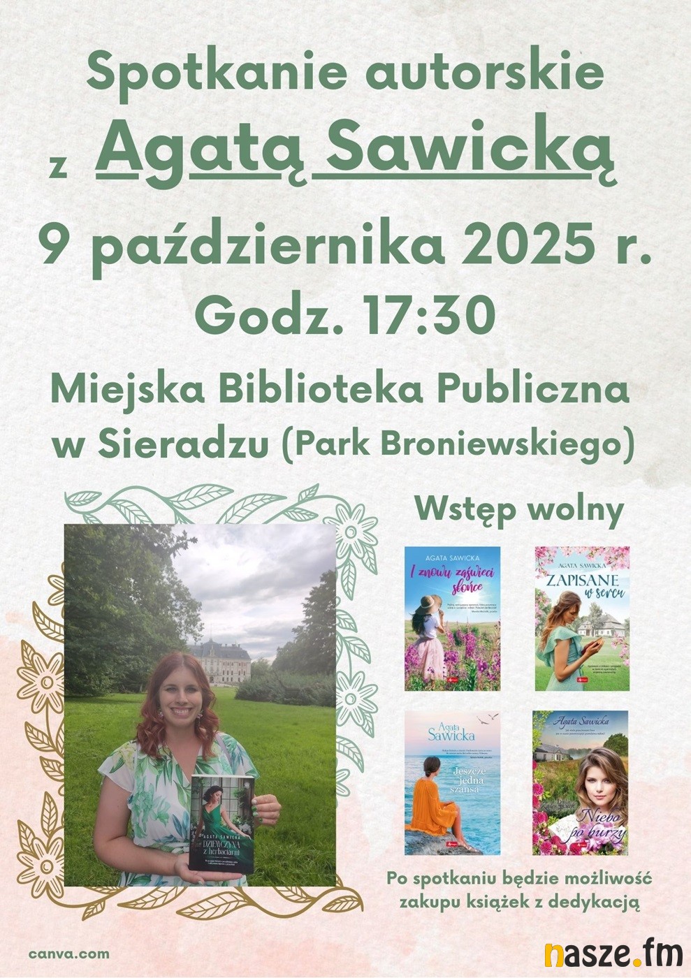 Autorka "Dziewczyny z herbaciarni" czy "Jeszcze jednej szansy" przyjedzie do Sieradza na zaproszenie Miejskiej Biblioteki Publicznej. Spotkanie z Agatą Sawicką zaplanowano na jutro na 17:30 w bibliotece w Parku Broniewskiego.