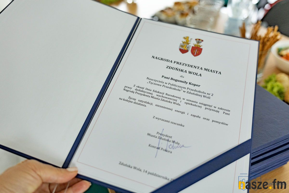 Z okazji Dnia Edukacji Narodowej uhonorowanych zostało czworo dyrektorów szkół i przedszkoli oraz szesnaścioro nauczycieli z miejskich placówek oświatowych. Nagrody wręczył wyróżnionym prezydent Zduńskiej Woli Konrad Pokora. Zaproszeni na uroczystość przyjęli także gratulacje i życzenia.