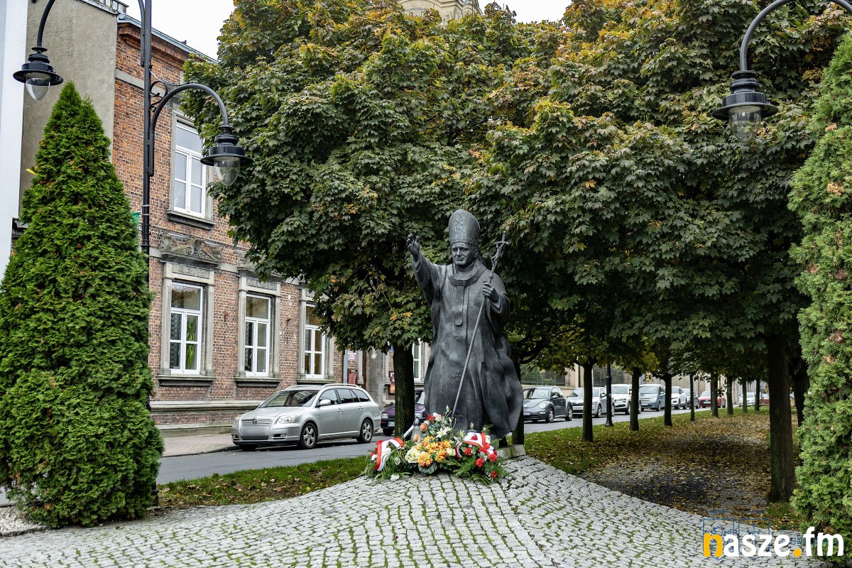 W hołdzie świętemu Janowi Pawłowi II przedstawiciele samorządu miasta i powiatu: prezydent Konrad Pokora, skarbnik miasta Maria Jabłońska oraz wicestarosta zduńskowolski Tomaszem Ziółkowskim złożyli dziś kwiaty przed pomnikiem papieża w al. Tadeusza Kościuszki w Zduńskiej Woli.