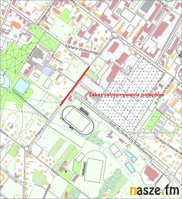 - ul. Piwna - zakaz zatrzymywania po obu stronach ulicy, od nieruchomości Piwna 18 do ul. Złotnickiego