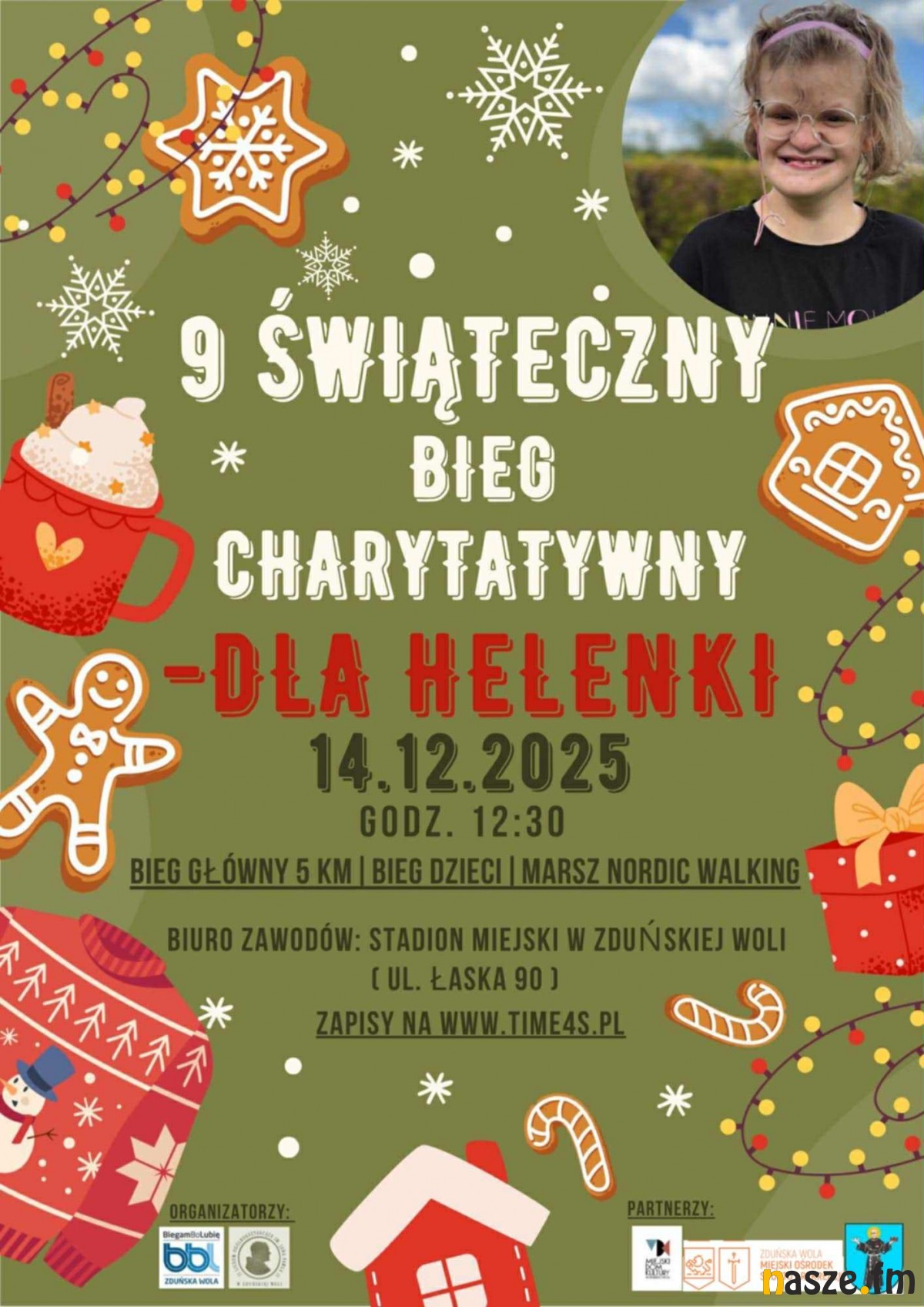 Biegam Bo Lubię Zduńska Wola oraz II Liceum Ogólnokształcące w Zduńskiej Woli zapraszają na 9. Świąteczny Bieg Charytatywny dla Helenki. Wydarzenie odbędzie się 14 grudnia na Stadionie Miejskim przy ulicy Łaskiej.