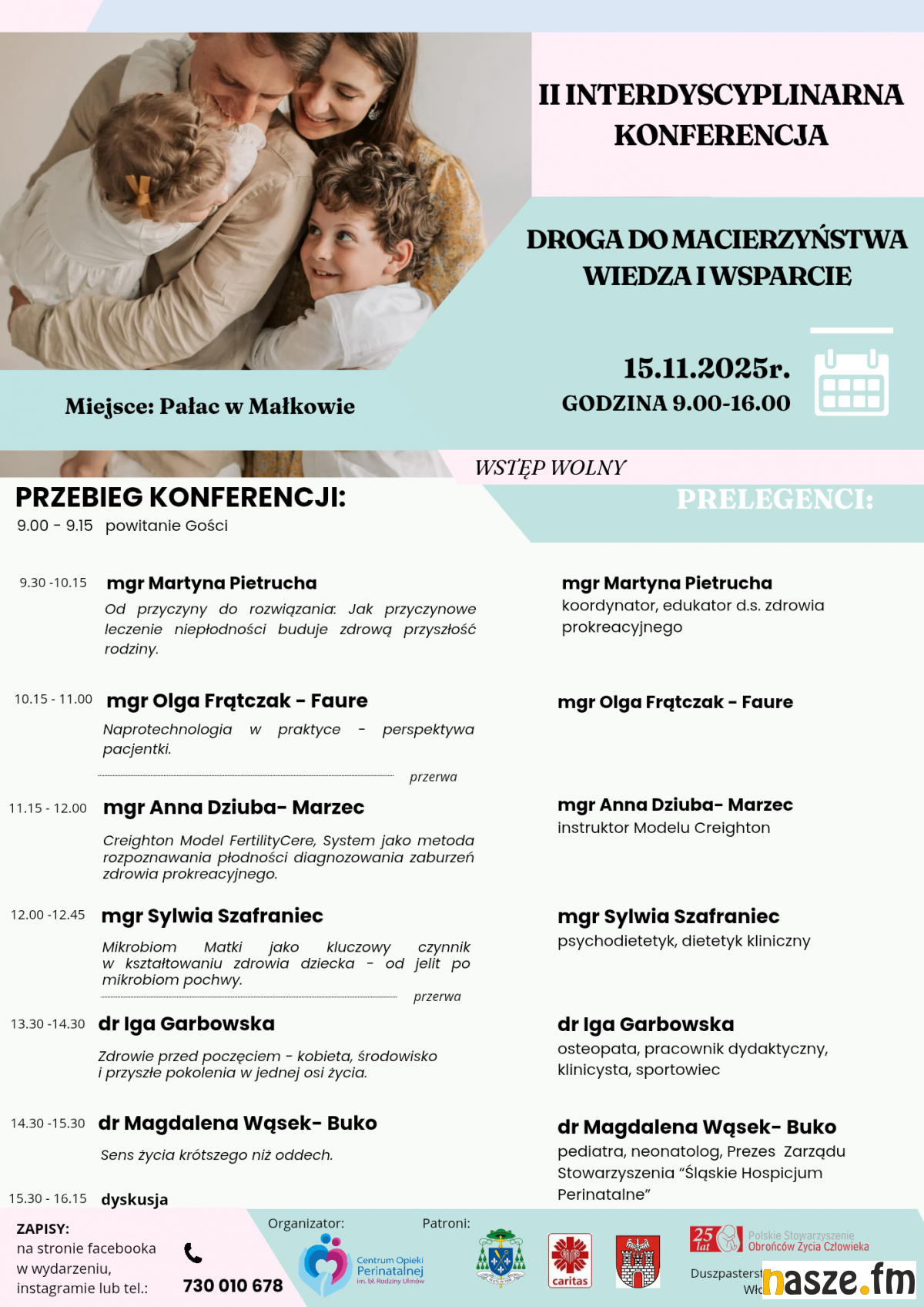W sobotę 15 listopada w Pałacu w Małkowie odbędzie się II Interdyscyplinarna Konferencja "Droga do macierzyństwa - wiedza i wsparcie". To spotkanie dedykowane wszystkim, którzy chcą lepiej zrozumieć kwestie zdrowia prokreacyjnego, płodności, a także przygotowania do rodzicielstwa - zarówno od strony medycznej, jak i emocjonalnej.