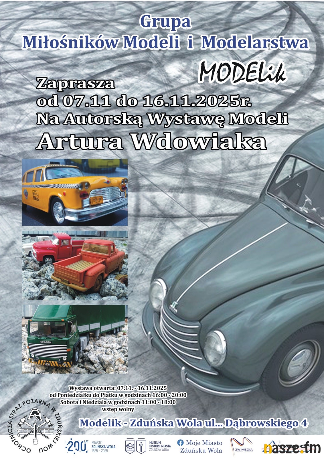 Działająca w Zduńskiej Woli Grupa Miłośników Modeli i Modelarstwa "Modelik" zaprasza na kolejną wystawę. Od jutra, 7 listopada, w siedzibie Ochotniej Straży Pożarnej w tym mieście będzie można oglądać modele pojazdów Artura Wdowiaka.