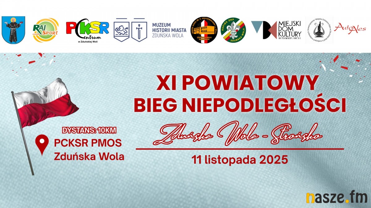 Zduńska Wola ponownie będzie na sportowo obchodzić Narodowe Święto Niepodległości. 11 listopada o godzinie 14:00 wystartuje bieg na dystansie liczącym ponad 10 km. Start na ul. Dolnej obok PMOS-u, meta w Strońsku. Uwaga kierowcy! W związku z organizacją wydarzenia wystąpią czasowe utrudnienia w ruchu drogowym.