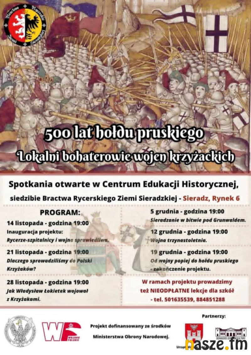 Bractwo Rycerskie Ziemi Sieradzkiej dzięki dofinansowaniu ze strony Ministerstwa Obrony Narodowej oraz wsparciu Urzędu Miasta w Sieradzu oraz Sieradzkiego Centrum Kultury realizuje program wydarzeń edukacyjnych poświęconych dziejom wojen krzyżackich oraz pamięci ich lokalnych bohaterów pod tytułem "500 lat hołdu pruskiego - lokalni bohaterowie wojen krzyżackich".