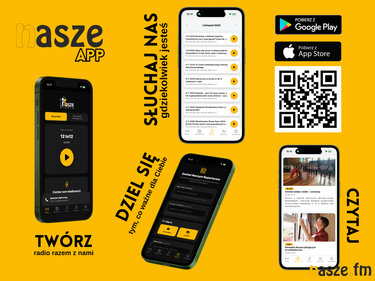 To moment, na który czekaliśmy. W urodzinowym tygodniu prezentujemy NaszeApp czyli naszą nową aplikację, która otwiera zupełnie nowy sposób słuchania Naszego Radia. Wystarczy zeskanować kod QR i możecie mieć nas zawsze przy sobie, gdziekolwiek jesteście. Aplikacja jest już dostępna na Android oraz iOS.