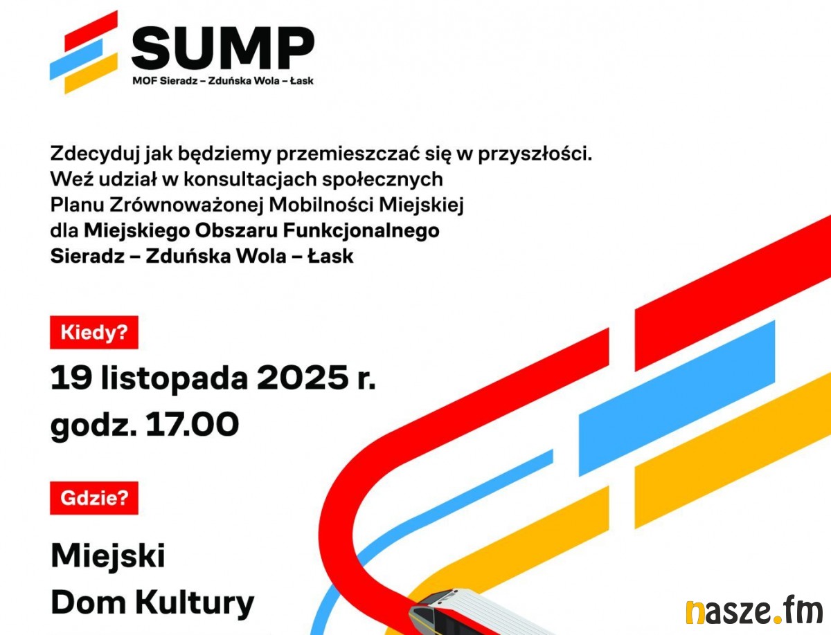 Na jutro, 19 listopada, w Zduńskiej Woli i Sieradzu zaplanowano spotkania w sprawie Planu Zrównoważonej Mobilności Miejskiej dla Miejskiego Obszaru Funkcjonalnego Sieradz - Zduńska Wola - Łask. To konsultacje społeczne, które pomogą ustalić, jakie są oczekiwania mieszkańców.