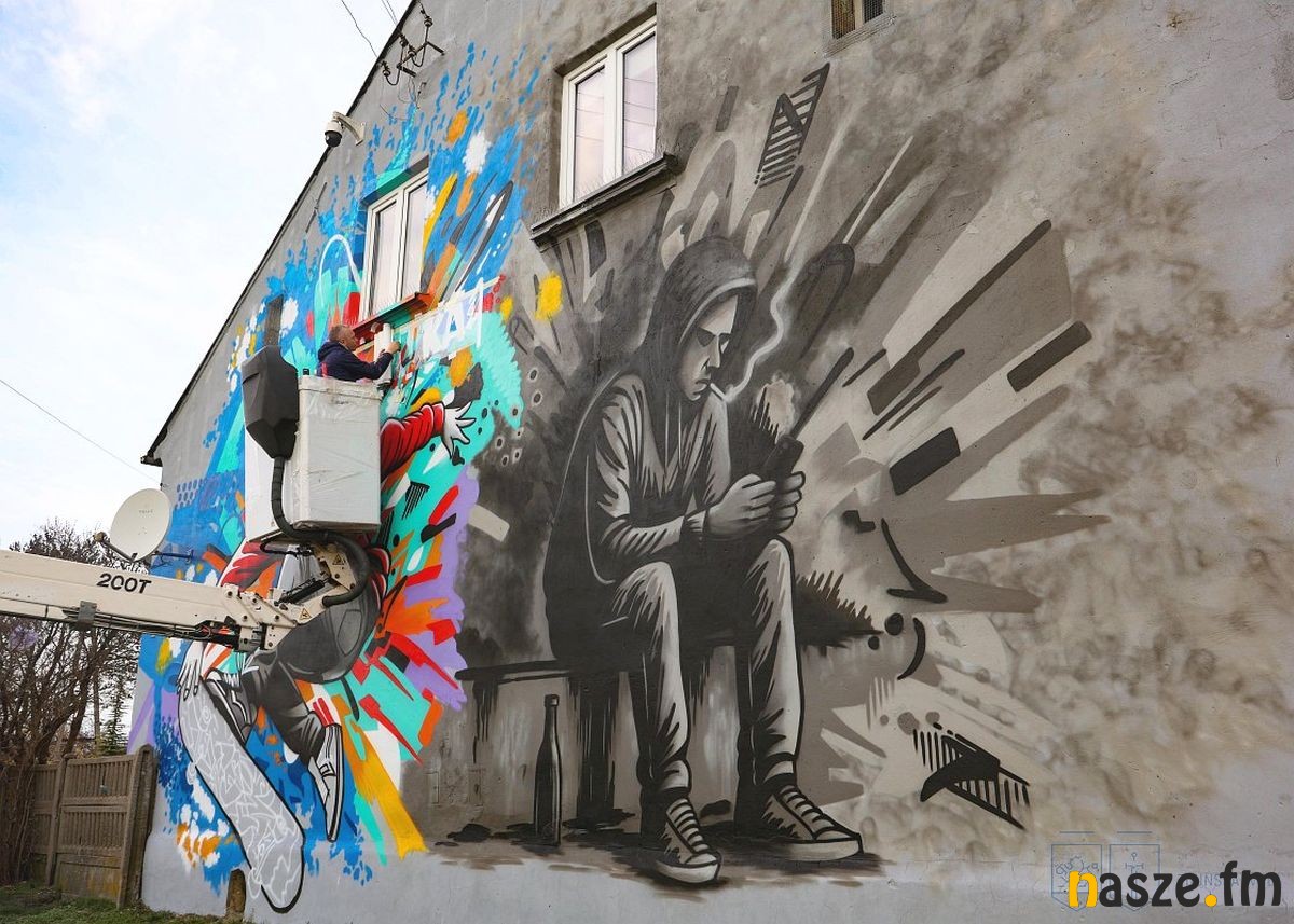 Praca ucznia stała się inspiracją do stworzenia pierwszego w mieście muralu profilaktycznego. Wykonał go natomiast Adam Wirski z Pabianic, znany jako "Kruk maluje".