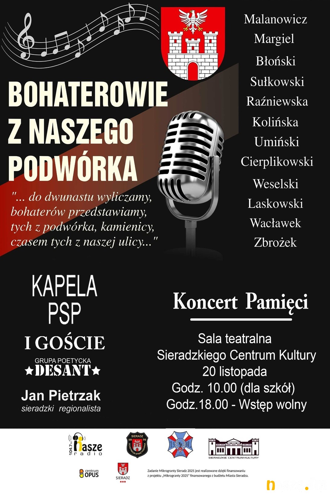Bohaterowie z naszego podwórka to projekt, który powstał dzięki dofinansowaniu poprzez sieradzkie mikrogranty. Autorem projektu jest Kapela PSP, która jako grupa nieformalna działająca przy Ochotniczej Straży Pożarnej w Sieradzu podjęła się zadania przybliżenia mieszkańcom losów dwunastu postaci związanych z naszym miastem. Dwunastu bohaterów walczących o wolność naszej ojczyzny, których wojenna zawierucha rzuciła na fronty rożnych wojen czy powstań. Pochodzili z Sieradza lub z Sieradzem związali swoje życie już po wojnie.