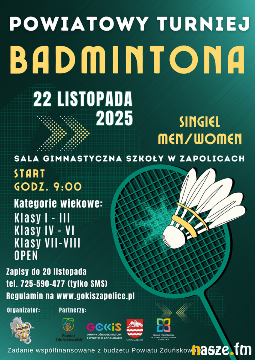 W sobotę w sali gimnastycznej Szkoły Podstawowej w Zapolicach odbędzie się Powiatowy Turniej Badmintona. Początek gier o godzinie 9:00.