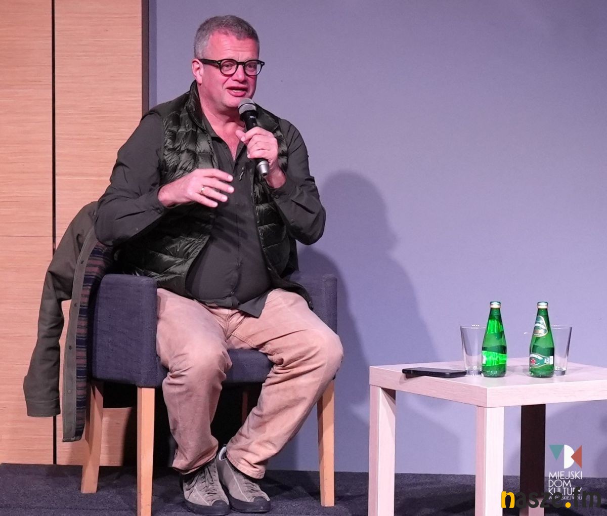 Spotkanie prowadził Paweł Perdek, który zadał pytania trafne i inspirujące dzięki temu usłyszeliśmy o tym, co dla pana Mellera najważniejsze: podróże, cittaslow, Warmia i Mazury, a także o jego książkach i życiu w pograniczu.